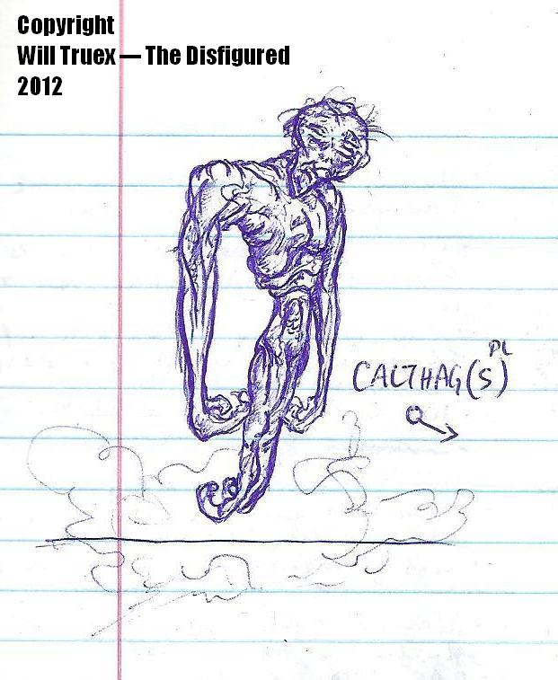 It’s been awhile, but I haven’t’ forgotten. Or given up. Pick one, why not? Anyway, today’s entry is a description of yet another race in TCoU: Blestemul. These guys…are strange. I’m not really sure what I had in mind when I started to create them. I think I started drawing a shoulder, and then the Calthag appeared out of it. They are a strange race, strange but unique. Enough bullshit. Here’s a picture: